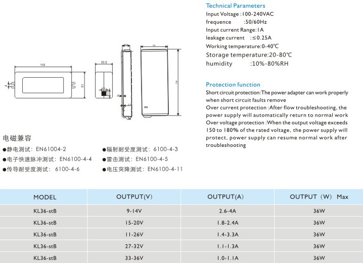 過流保護(hù):過流故障排除后,電源將自動恢復(fù)正常工作 過壓保護(hù):當(dāng)輸出電壓超過額定電壓的150~180%時,電源將保護(hù),故障排除后電源能恢復(fù)正常工作 輸入電壓:100-240VAC 頻率:50/60Hz 輸入電流:1A 漏電電流:<0.25A 工作溫度:0-40℃ 貯藏溫度:-20-80℃ 濕度:10%-80%RH" />